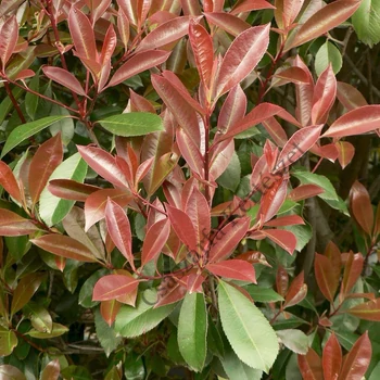 A korallberkenye Délkelet- Ázsiában őshonos, 2-3 m magasra megnövő cserje. Télen-nyáron látványos dísze lehet kertünknek; a friss levelek tavasszal élénkpiros, bronzos árnyalatúak, később fényes zöld, bőrszerűvé válnak. Apró fehér virágait tömött bugákban hozza április, május időszakában. |