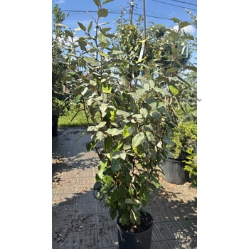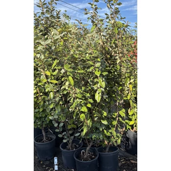 A Széleslevelű Ezüstfa (Elaeagnus ebbingei Compacta), 1,8-2 m magasra növő, ezüstös-zöld örökzöld, sűrűn ágas, zárt, gömbölyded koronájú bokor. Levelei kissé hullámos szélűek, bőrszerűek, fiatal korban ezüstösen pikkelyesek, amely dérrel fedett hatást kelt. Ősszel tömegével hozza apró, krémfehér virágait. Termése fényes ovális, melyek belseje éretten ehető. Félárnyékos helyen fejlődik a legjobban , de a napos részeket is bírja. Jó vízáteresztő képességű, átlagos kerti talajba ültessük. Vízigénye közepes, a felnőtt példányok ugyanakkor eléggé szárazságtűrőek. Hidegebb teleken előfordulhat, hogy ledobja a leveleit. Dézsás növényként is tarthatjuk. Szállítási méret: 100-125 cm, 10 literes konténerben |